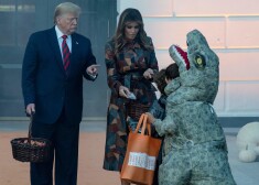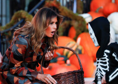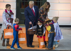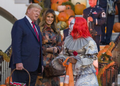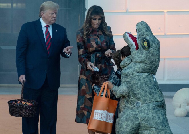 Дональд и Мелания Трамп угощают детей конфетами в честь Хэллоуина