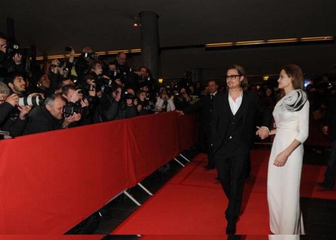 Анджелина Джоли и Брэд Питт на премьере фильма "В краю крови и меда" в Париже в 2012 году