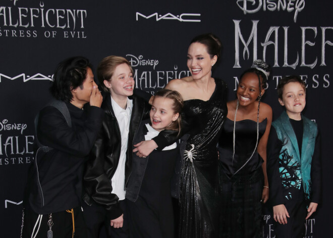 Анджелина Джоли с детьми на премьере фильма "Малефисента: Владычица тьмы"