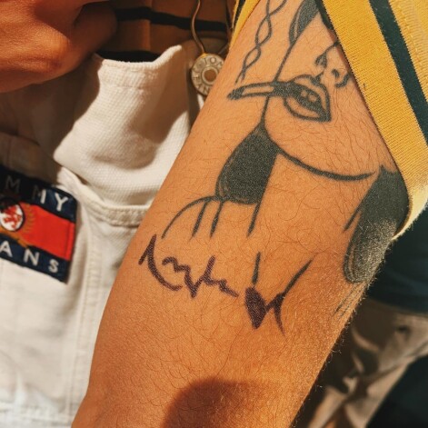 После спектакля, 44-летняя Анджелина, которой очень понравилось представление, пришла за кулисы пообщаться с актерами. И тут Смит признался ей, что он ее давний и страстный фанат и даже сделал татуировку в её честь: по просьбе Алекса, на его плече набили изображение лица Джоли с сигаретой. Анджелине очень понравилась татуировка. Более того, она даже согласилась поставить под ней свою подпись – прямо на коже Алекса – и сфотографироваться с ним на память.