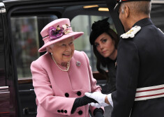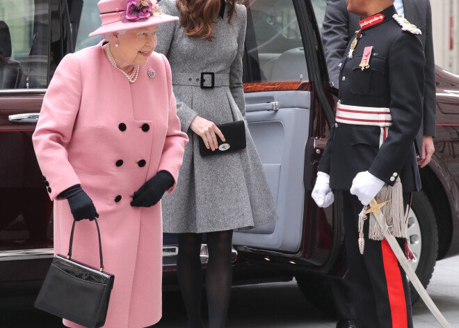 Елизавета II и герцогиня Кэтрин во время прибытия в королевский колледж Лондона