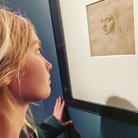 Знаменитая мама запечатлела 13-летнюю Неву рядом с полотном Леонардо да Винчи. Водянова сравнила дочь с героиней картины художника.