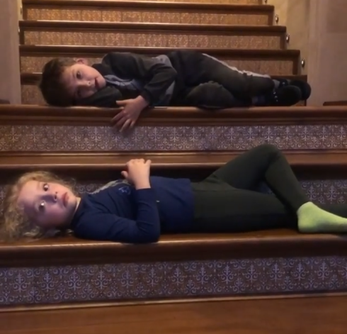 Примадонна записала забавный ролик, как дети ждут отца домой. Малыши легли на лестнице в гостиной и замерли в ожидании. «Если папа не приедет, у меня будет нервный срыв», — с уверенность сообщил Гарри. Алла Борисовна поинтересовалась у близнецов, они дети или ступеньки, на что Лиза заявила, что она - говорящая ступенька. «Говорящая ступенька, которая любит папочку моего и мамочку», — дополнила девочка.