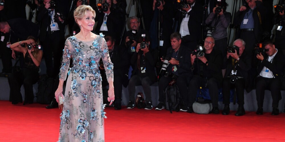 Знаменитости02.09.201779-летняя Джейн Фонда в бежевом платье произвела фурор на Венецианском фестивале