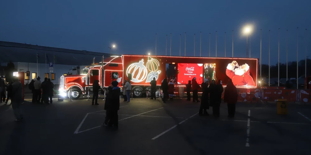 ФОТО: в Риге снова побывал легендарный грузовик Coca-Cola, но ажиотаж заметно стих