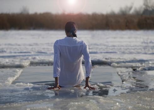 ФОТО: несмотря на суровый мороз, в Даугавпилсе верующие смело окунались в ледяную воду