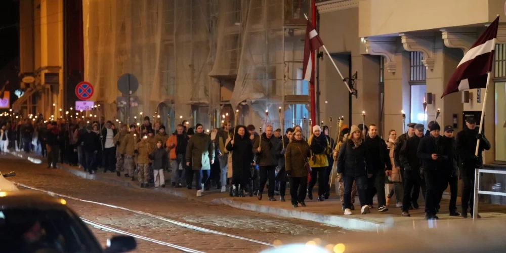 ФОТО: сотни людей вышли на факельное шествие в честь Дня Лачплесиса